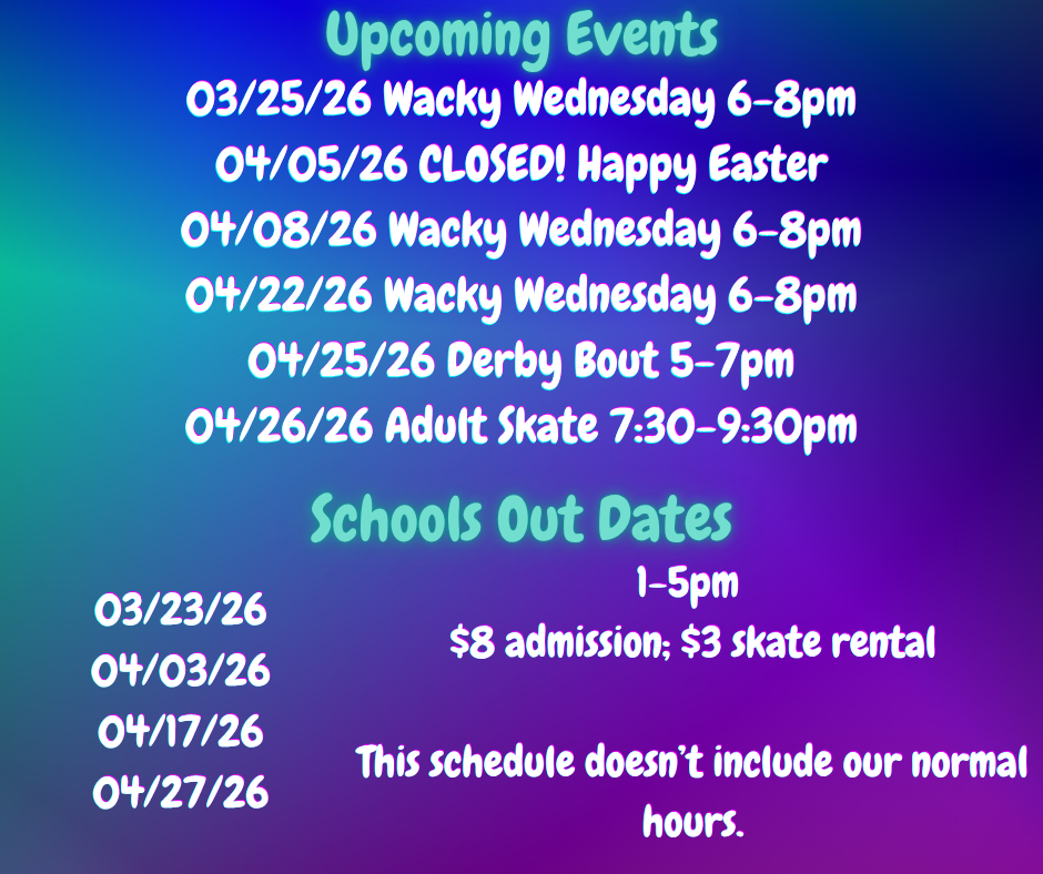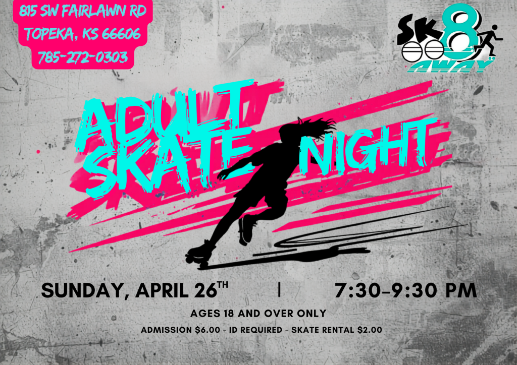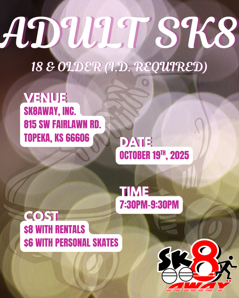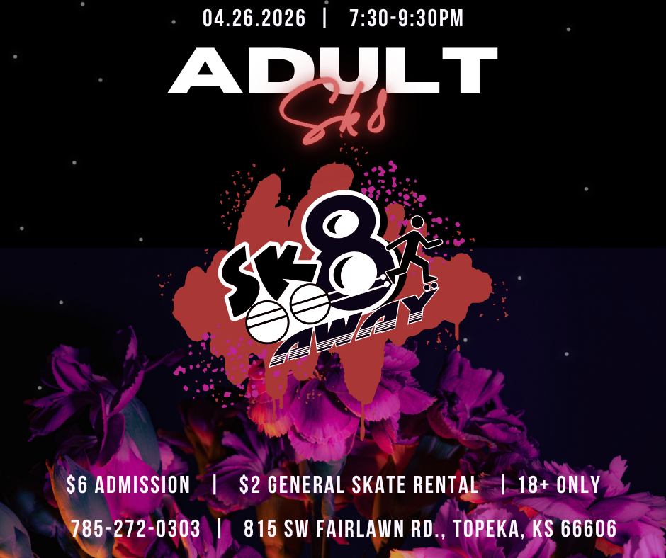 Need a fun night out without the kiddos? Our Adult Skate sessions are the perfect way to unwind, skate, and socialize with friends in a laid-back, all-ages-18+ atmosphere. Must have a valid ID to enter. Great music, cool vibes, and plenty of room to roll!